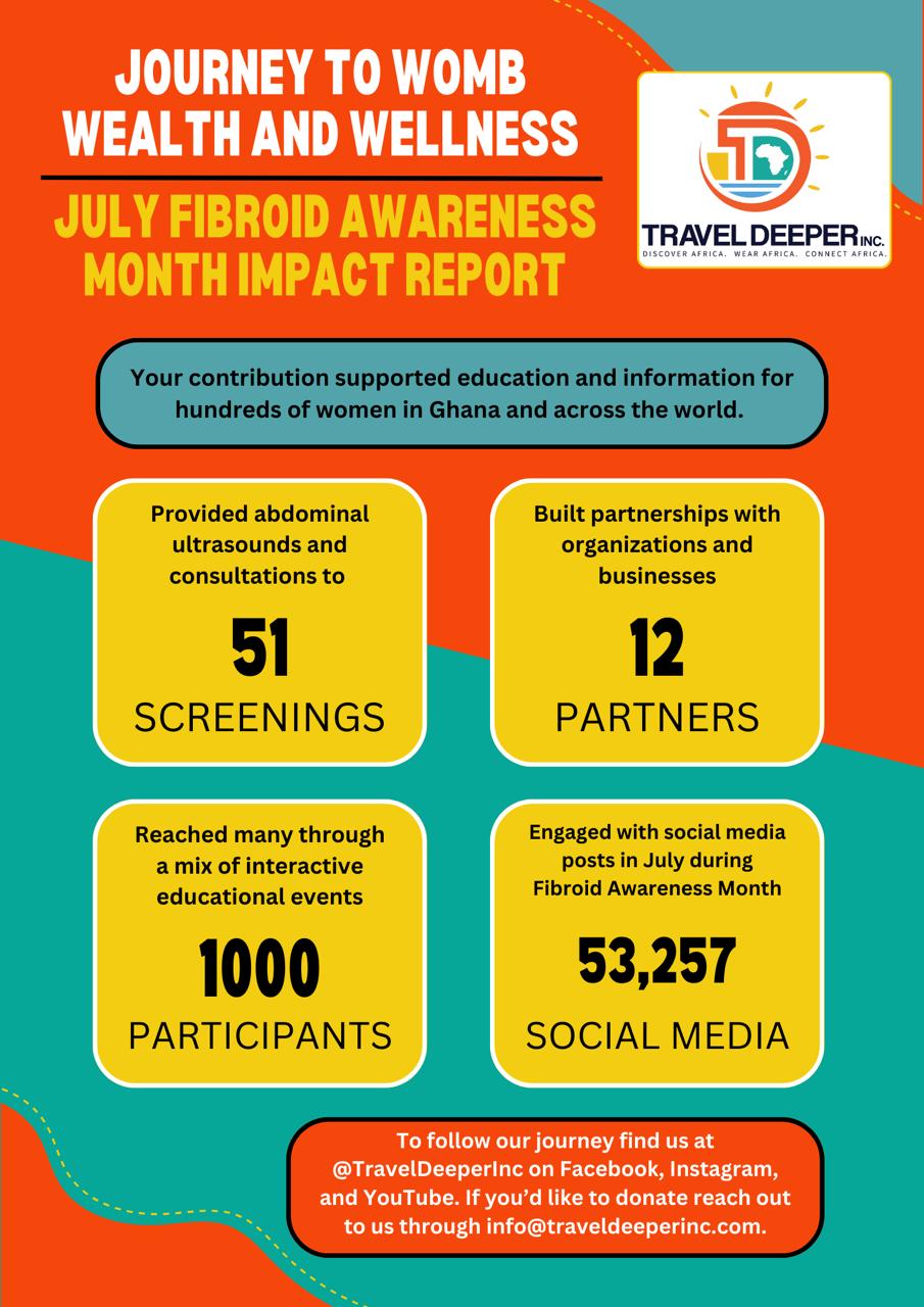 Journey to Womb Wealth and Wellness is Travel Deeper Inc.’s signature global initiative rooted in fibroid awareness, holistic womb care, and the power of storytelling. From our annual gatherings in Accra to community workshops across Ghana, we create safe and empowering spaces for Black women and girls to explore their bodies, mental health, and leadership.